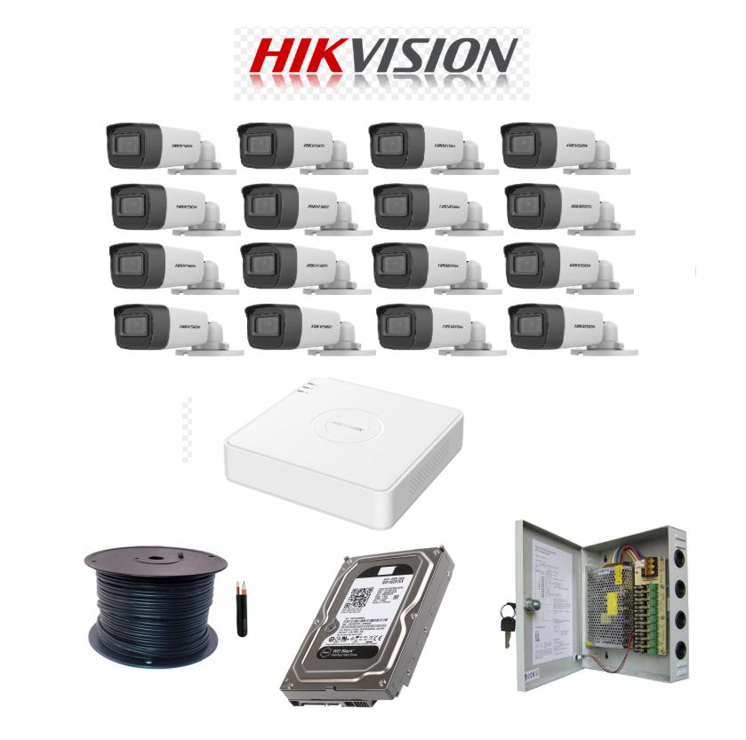 HikVision 16-ch 720p Mini 1U H.265 Kit – Embedded DVR – 16 x HD1080P Camera – 20M Night vision – 1TB HD – 100m Cable