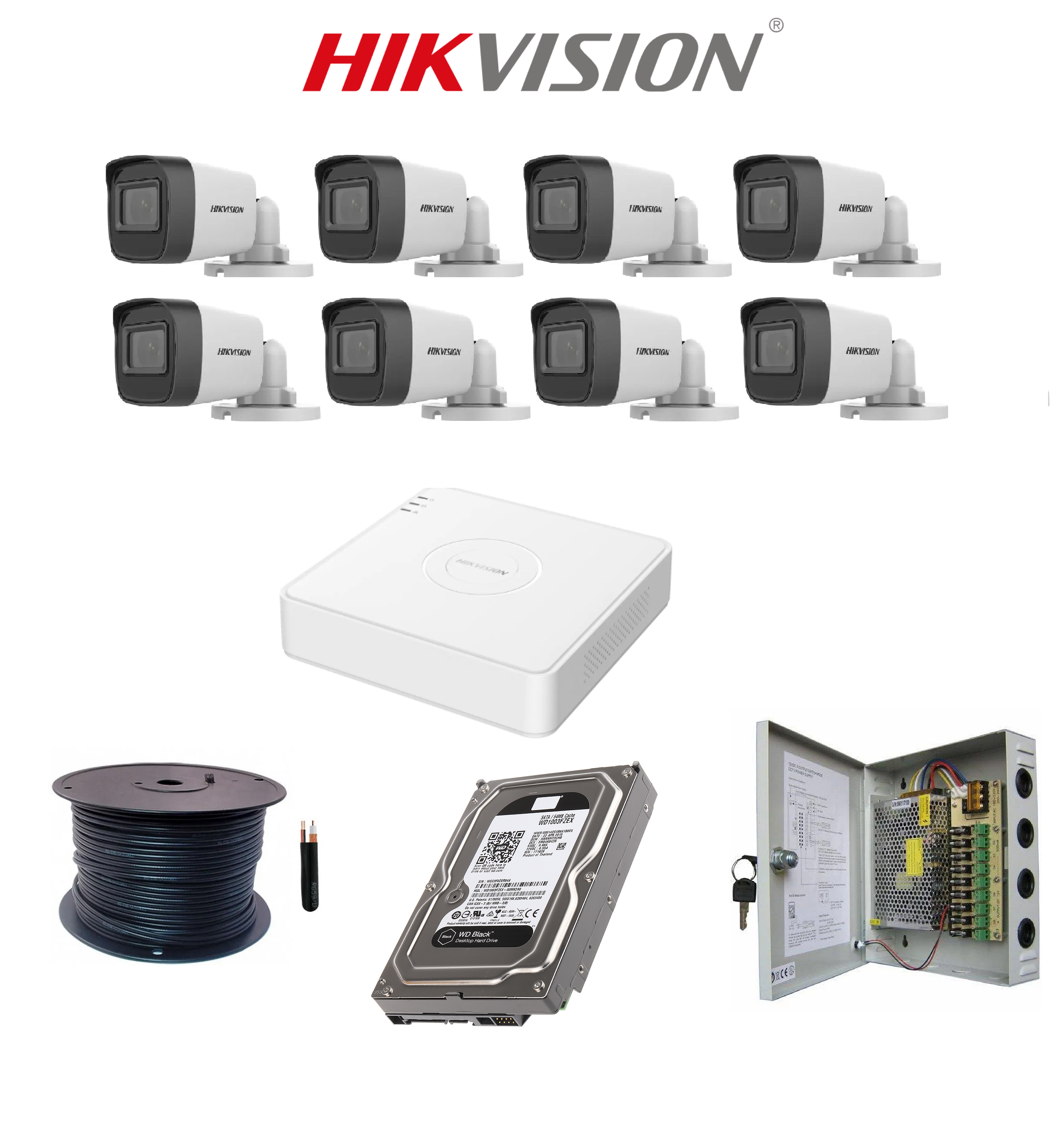 HikVision 8 Ch 1080p Mini 1U H2.265 AcuSense Kit – Embedded DVR – 8 x HD1080p Camera – 20m Night Vision – 500GB HD 100m Cable